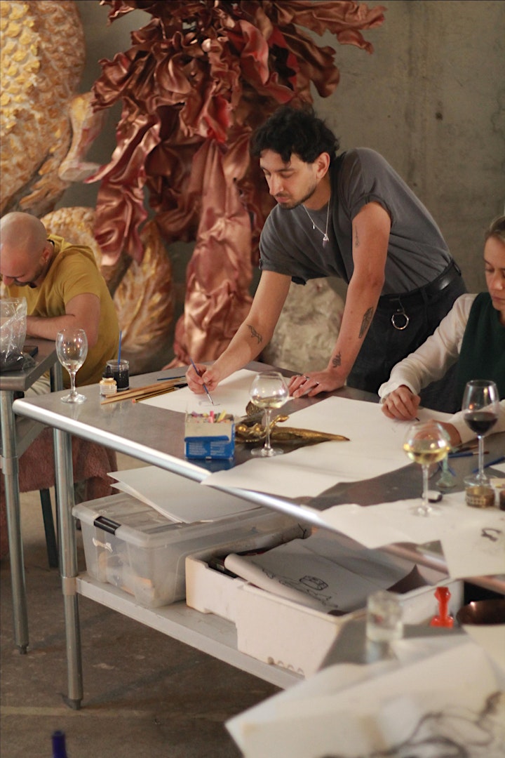 Through the use of a carefully constructed set, the life model will be set up in different scenarios to draw from, telling a story of the sublime to the mysterious. The class will begin with a series of quick, warm up poses, followed by longer poses with the model. There will be live drawing demos with Meg and Tom and they will offer tips throughout the class, so no previous drawing experience is needed.