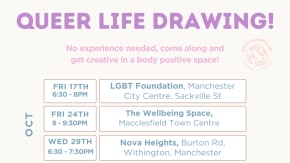 This workshop will be run by Ben Saunders (he/him), Manchester-based queer illustrator and tattoo artist. Please see his Instagram https://instagram.com/bensaunders.art?igshid=NTc4MTIwNjQ2YQ== for examples of his work.
