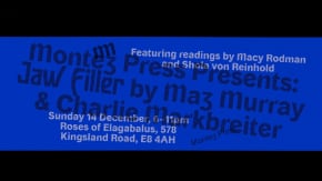 Montez Press invites you to a conversation around our newest release, neonoir novel Jaw Filler by Maz Murray & Charlie Markbreiter, on Monday 15th December, from 7 - 8.30pm at Housmans Bookshop, 5 Caledonian Road, N1 9DX, featuring a Q&A hosted by writer So Mayer. Tickets are free but booking is essential.